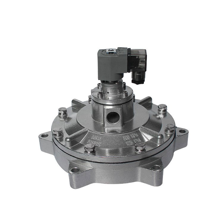 Composé d'une tête pilote électromagnétique, d'un ensemble membrane (membrane, ressort de pression, joint) et d'un corps de vanne. Installé immergé dans le réservoir d'air, il se connecte au réservoir via une bride. L'orifice de sortie est situé au centre du corps de la vanne à l'intérieur du réservoir, s'étendant à travers des composants comme un dispositif pénétrant dans la paroi pour entrer dans la chambre de soufflage pour fonctionner. Ce type de vanne présente une conception de canal d'écoulement optimisée qui réduit efficacement la résistance au flux de gaz, garantissant un fonctionnement stable même dans des conditions de basse pression. Cette conception réduit la consommation d'énergie et prolonge la durée de vie du diaphragme.